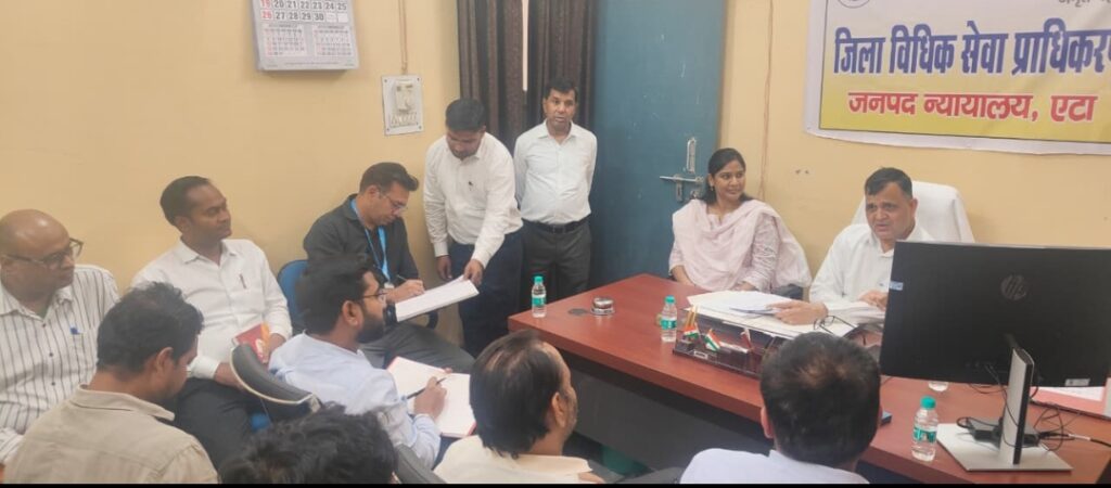 उक्त के अनुपालन में नरेन्द्र पाल राणा, विशेष न्यायाधीश (Rape & POCSO Exclusive)/नोडल अधिकारी, राष्ट्रीय लोक अदालत, एटा की अध्यक्षता में तुषारिका सिंह, अपर मुख्य न्यायिक मजिस्ट्रेट/सचिव, जिला विधिक सेवा प्राधिकरण एटा, राम विनोद कुमार, लीड बैंक मैनेजर, एटा एवं कुछ अन्य बैंक प्रबन्धकों के मध्य विश्राम कक्ष सचिव, जिला विधिक सेवा प्राधिकरण, एटा में आज दिनांक 20.04.2026 को सायं 04 बजे सम्पन्न की गयी, जिसमें बैंक रिकवरी से सम्बन्धित वादों को आगामी राष्ट्रीय लोक अदालत में अधिक से अधिक चिन्हित कर निस्तारित कराने के लिये निर्देशित किया गया।