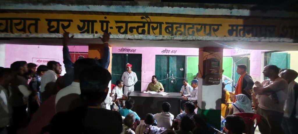 दिनांक 18/04/26 को अरविन्द कुमार अपर जिलाधिकारी बिo राo को शाम में ग्राम चंदौरा बहादुर परगना कांट तहसील सदर के ग्राम से शिकायत मिली कि ग्राम में फॉर्मर रजिस्ट्री का न तो कैंप लग रहा है और ना ही उनकी फॉर्मर रजिस्ट्री बनाया जा रहा है। शिकायत का संज्ञान लेकर अपर जिलाधिकारी बिo राo रात 8 बजे मौके पर पहुंच गए, अपर जिलाधिकारी बिo राo को देख लगभग सैकड़ों लोग इकट्ठा हो गए। फिर पंचायत भवन में ही प्रकाश की व्यवस्था करके रात्रि चौपाल लगाकर एक एक ग्रामीण व्यक्ति की समस्याओं को गंभीरता से सुना और नोट किया। जिसमें ग्रामीण विकास द्वारा अपने भाई के ऐक्सिडेंट में मृत्यु होने पर कृषक दुर्घटना नहीं हो पाई , संगीता द्वारा विरासत और फॉर्मर रजिस्ट्री, गीता देवी पति के एक्सीडेंट पर मुख्यमंत्री कृषक दुर्घटना, वारिसान, फॉर्मर रजिस्ट्री ना बनने,रामनिवास द्वारा कुरा बंटवारा न करने