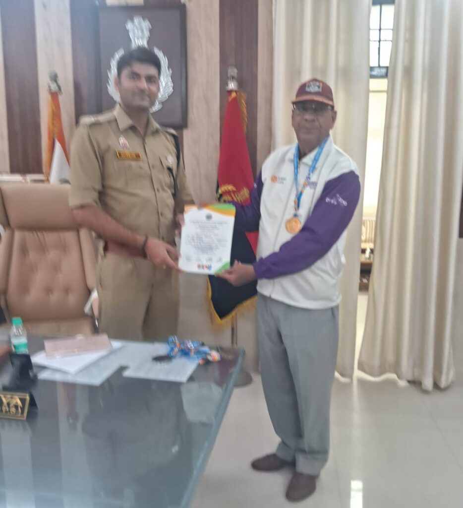 आगरा,पुलिस उपायुक्त कार्यालय कलेक्ट्रेट परिसर जनपद आगरा पर श्रीमान आदित्य आई0.पी0.एस0.महोदय पुलिस उपायुक्त पश्चिम कमिश्नरेट आगरा द्वारा, एडवेन्चर एण्ड मास्टर स्पोर्ट्स फेडरेशन द्वारा नेशनल मास्टर्स गेम्स 2026 दिल्ली दिनांक 09.04.26 से 11.04.26.तक ईस्ट विनोद नगर स्पोर्ट्स कम्पलैक्स दिल्ली मे एथलेटिक्स चैम्पियनशिप आयोजित हुई। और श्री शिवदयाल शर्मा जी को भारतीय महिला फुटबाल महा संघ के राष्ट्रीय अध्यक्ष श्रीमान मुकेश शर्मा जी जो कि मुख्य अतिथि थे, उन्होने मंच से सम्मानित किया क्योंकि रिटायर्ड C F O शिवदयाल शर्मा ने 65+ आयु वर्ग मे जनपद आगरा स्टेट उत्तर प्रदेश का प्रतिनिधित्व करते हुए 400मी0 दौड, 800 मी0 दौड व 1500 मी0 दौड मे द्वितीय स्थान प्राप्त करके सिल्वर मैडल व 4×100 मी0 रिले रेस व 4×400 मी0 रिले रेस मे प्रथम स्थान प्राप्त करके स्वर्ण पदक प्राप्त कर जनपद आगरा सहित उत्तर प्रदेश का नाम रोशन किया। तथा रिटायर्ड C F O शिवदयाल शर्मा को श्रीमान पुलिस उपायुक्त पश्चिमी महोदय ने मैडल पहनाकर प्रमाण पत्र प्रदान करते हुए सम्मानित किया तथा वहुत वहुत वधाई व शुभ कामनायें देते हुए उज्जवल भविष्य की कामना की।
