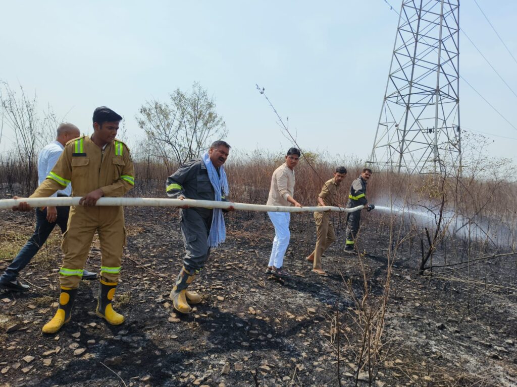 सूचना पर पहुंची फायर ब्रिगेड की टीम ने नगर पंचायत अध्यक्ष की मौजूदगी में तत्काल राहत एवं बचाव कार्य शुरू किया। फायर कर्मियों ने कड़ी मशक्कत करते हुए आग को फैलने से रोका और कुछ ही समय में उस पर नियंत्रण पा लिया। इस दौरान स्थानीय लोगों ने भी बाल्टी, पाइप आदि के माध्यम से आग बुझाने में सक्रिय सहयोग दिया। प्रत्यक्षदर्शियों के अनुसार आग की लपटें काफी ऊंची उठ रही थीं, जिससे कुछ समय के लिए स्थिति भयावह हो गई थी। हालांकि फायर ब्रिगेड की तत्परता के चलते एक बड़ी दुर्घटना टल गई और किसी प्रकार की जनहानि नहीं हुई। फिलहाल आग लगने के कारणों का स्पष्ट पता नहीं चल पाया है, लेकिन आशंका जताई जा रही है कि अत्यधिक गर्मी और सूखी झाड़ियों के कारण यह घटना हो सकती है। नगर पंचायत अध्यक्ष उस्मान अली ने मौके पर उपस्थित लोगों से सतर्क रहने की अपील करते हुए कहा कि गर्मी के मौसम में इस प्रकार की घटनाओं से बचाव के लिए विशेष सावधानी बरतना आवश्यक है। इस दौरान सभासद रामपरीखा विश्वकर्मा, लिपिक अंकित पांडेय सहित अन्य स्थानीय लोग भी मौके पर मौजूद रहे और राहत कार्य में सहयोग करते नजर आए। कही भी आग जैसी स्थिति दिखाई दे तो तुरंत इसकी सूचना संबंधित विभाग को दें, ताकि समय रहते कार्रवाई कर किसी बड़ी अनहोनी को रोका जा सके।