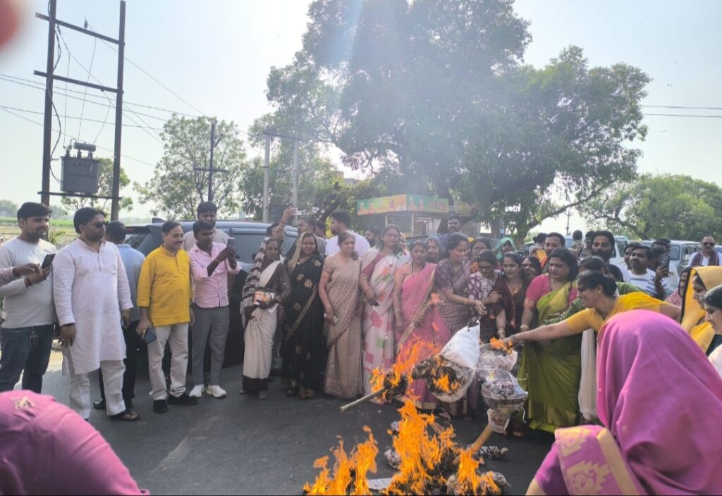 एटा,आज दिनांक 24 अप्रैल 2026 को भाजपा कार्यालय एटा पर प्रभारी मंत्री संदीप सिंह के मुख्य अतिथित्व में नारी वंदन विल विपक्ष की हठधर्मिता के कारण स्वीकृति न होने के कारण प्रस्तावित 33 प्रतिशत महिला आरक्षण से देश की महिलाएं वंचित होने के कारण आयोजित महिला आक्रोश सम्मेलन एवं प्रतिपक्ष के नेता राहुल गांधी के पुतला दहन में पूर्व सभासद एवं भारत सरकार द्वारा नामित समाज कल्याण बोर्ड उत्तर प्रदेश की पूर्व सदस्य श्रीमती मुन्नी दीक्षित द्वारा सहभागिता की गई ,इस अवसर पर कार्यक्रम की संयोजिका अर्चना डोली सक्सेना,माधुरी गुप्ता,नीतू सिंह चौहान प्रवेश भारद्वाज,जिला अध्यक्ष भाजपा प्रमोद गुप्ता,विधायक मारहरा वीरेंद्र सिंह लोधी,अलीगंज सत्यपाल सिंह राठौर,महामंत्री सुशील गुप्ता सहित सैकड़ों भाजपा पदाधिकारी एवं महिला कार्यकर्ता मौजूद रही